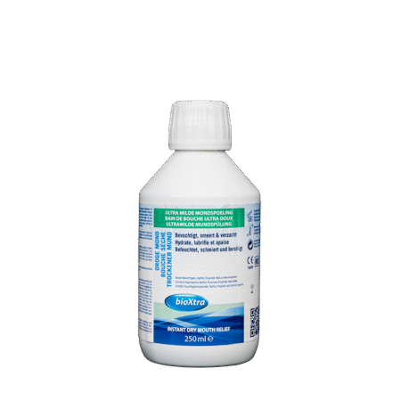 bioXtra Mondspray werkt als een effectieve vervanging van natuurlijk speeksel door het micromilieu van de mond te reguleren. De formulering hydrateert, verzacht en kalmeert snel en effectief het ongemak van een droge mond (xerostomie). bioXtra Mondspray helpt het glazuur te versterken en te beschermen tegen de vorming van gaatjes, terwijl het zorgt voor een frisse adem en het tandvlees soepel houdt.